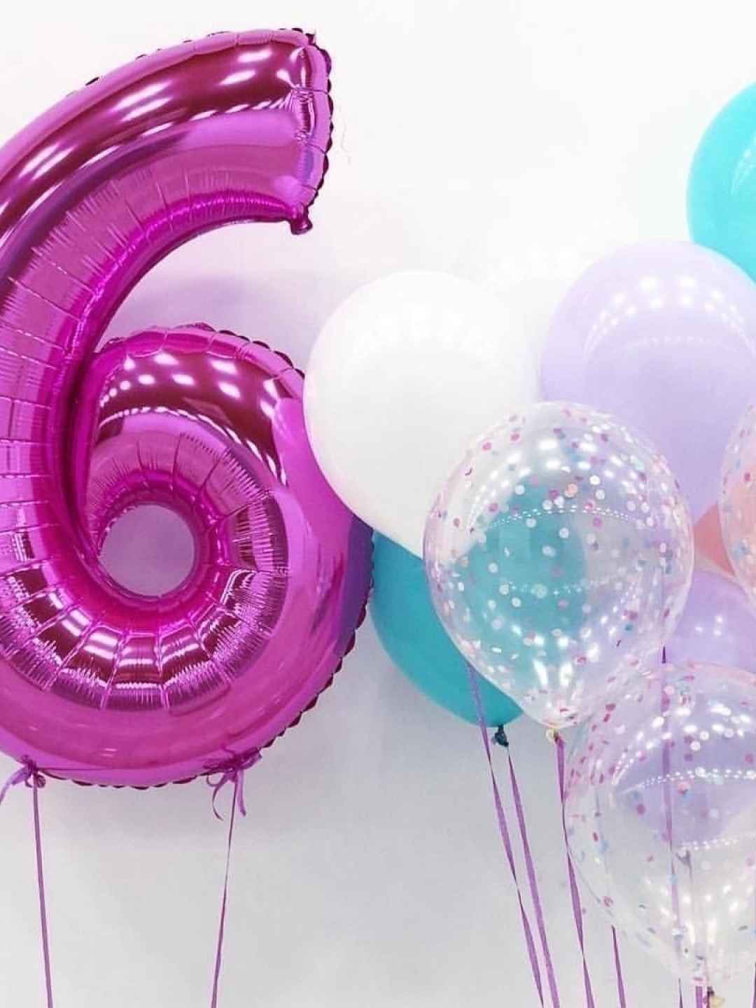 - 1 большая фольгированная цифра 6 фуксия (102см)