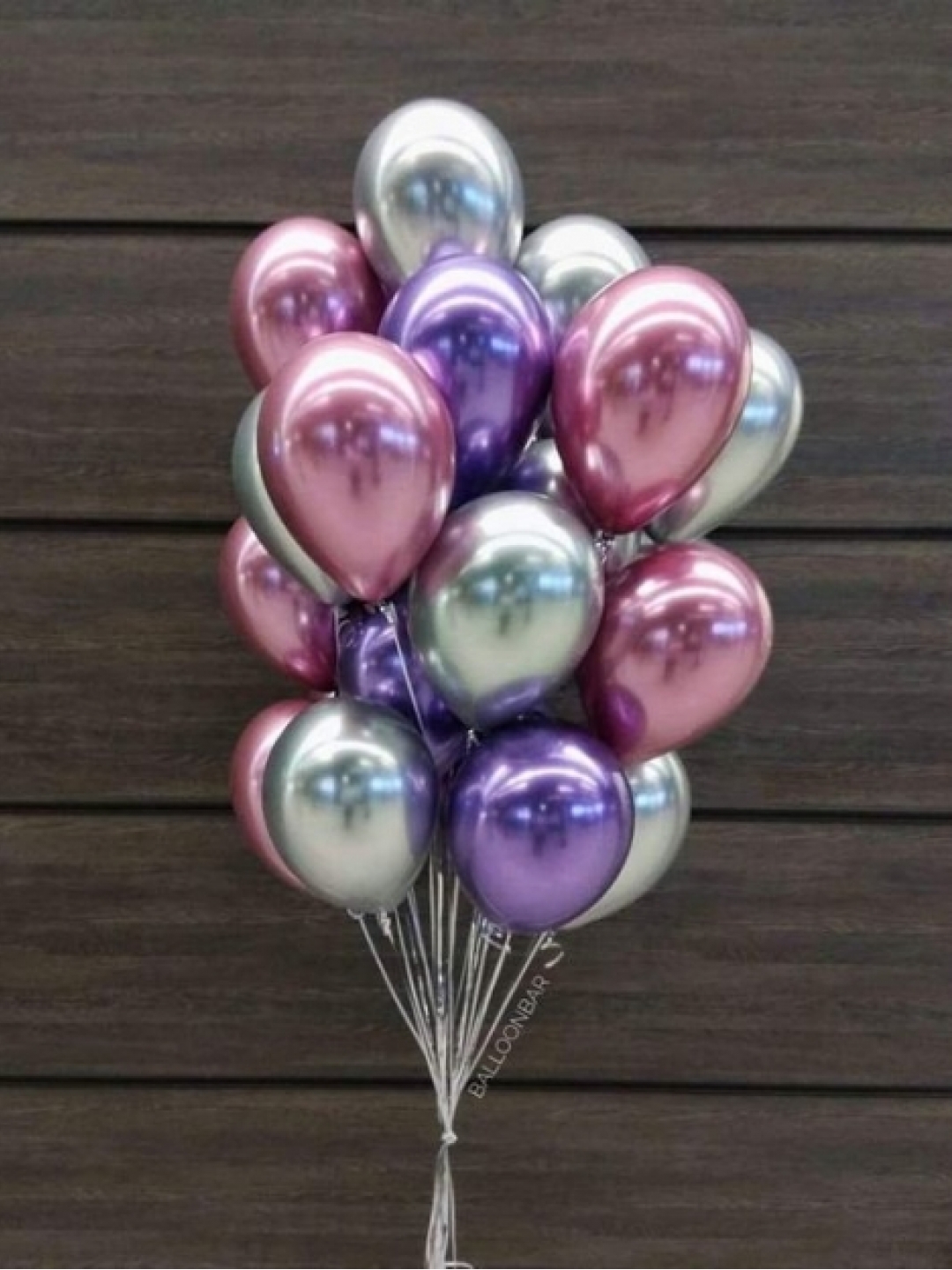 - Латексные шары Хром (серебро, розовый, фиолетовые) 30 см - 15 шт