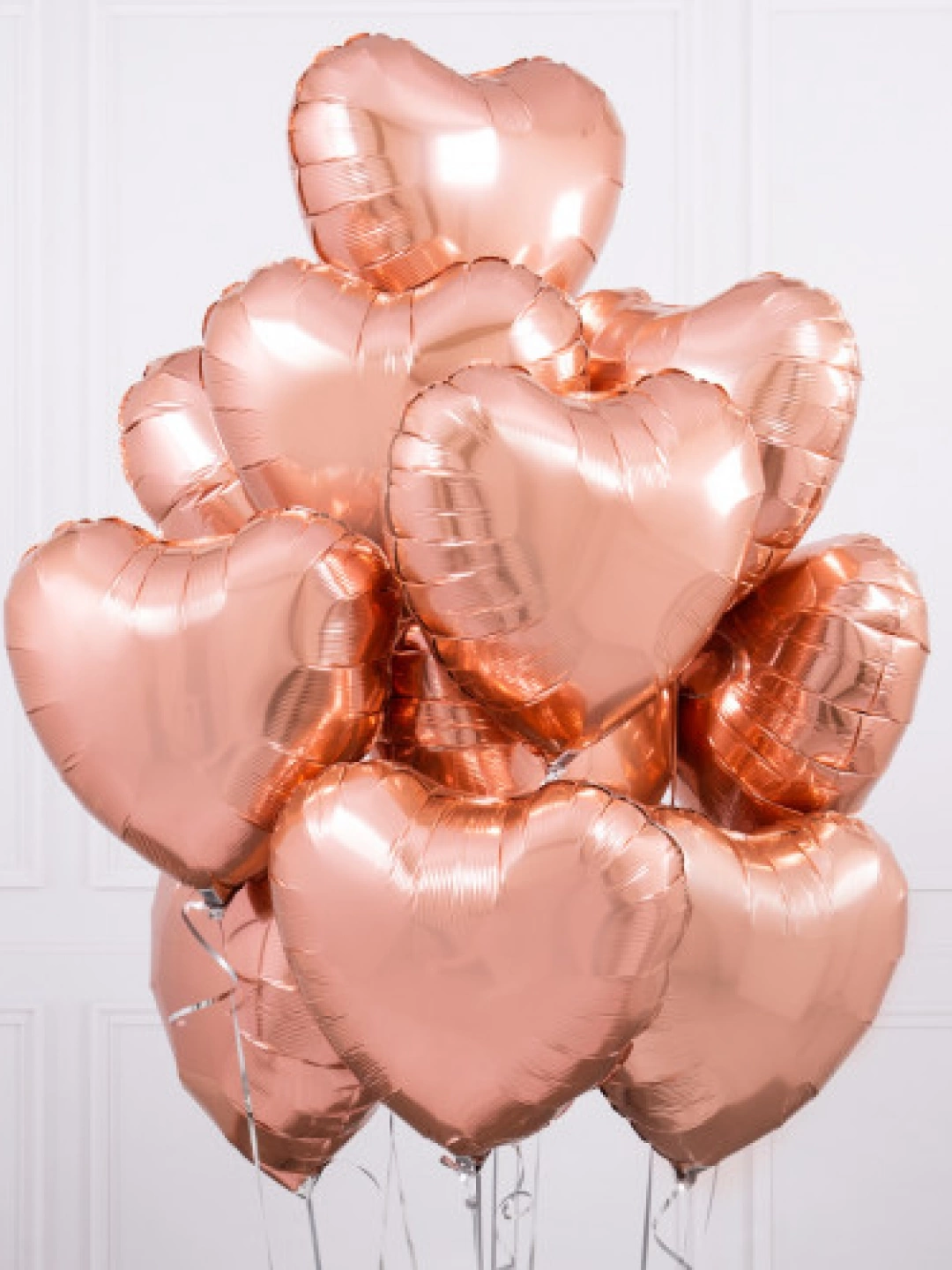 - 12 фольгированных шара сердце розовое-золото ( 46 см)