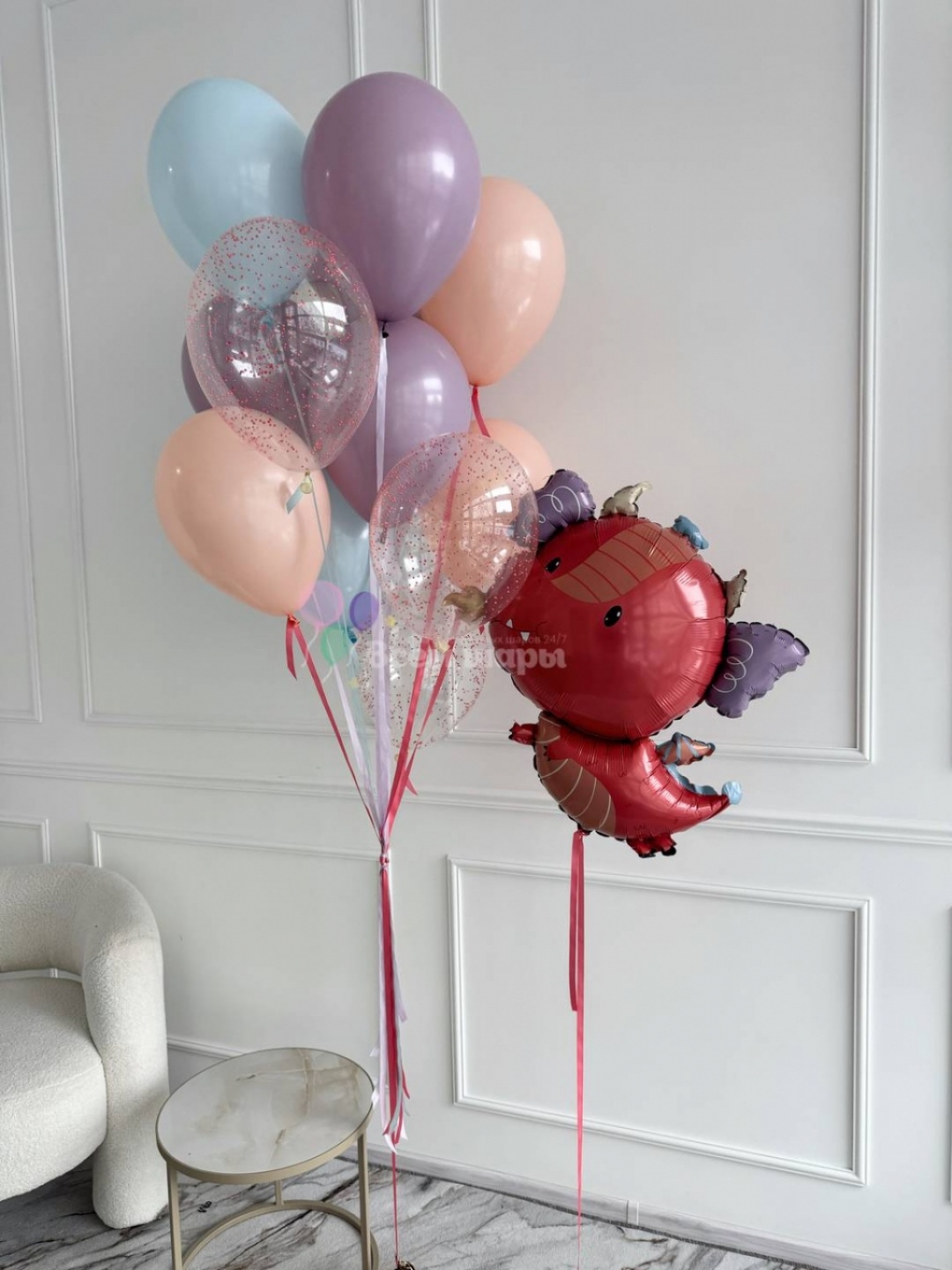 Все шарики наполнены гелием и обработаны специальным составов, летают от 3-х до 30 дней