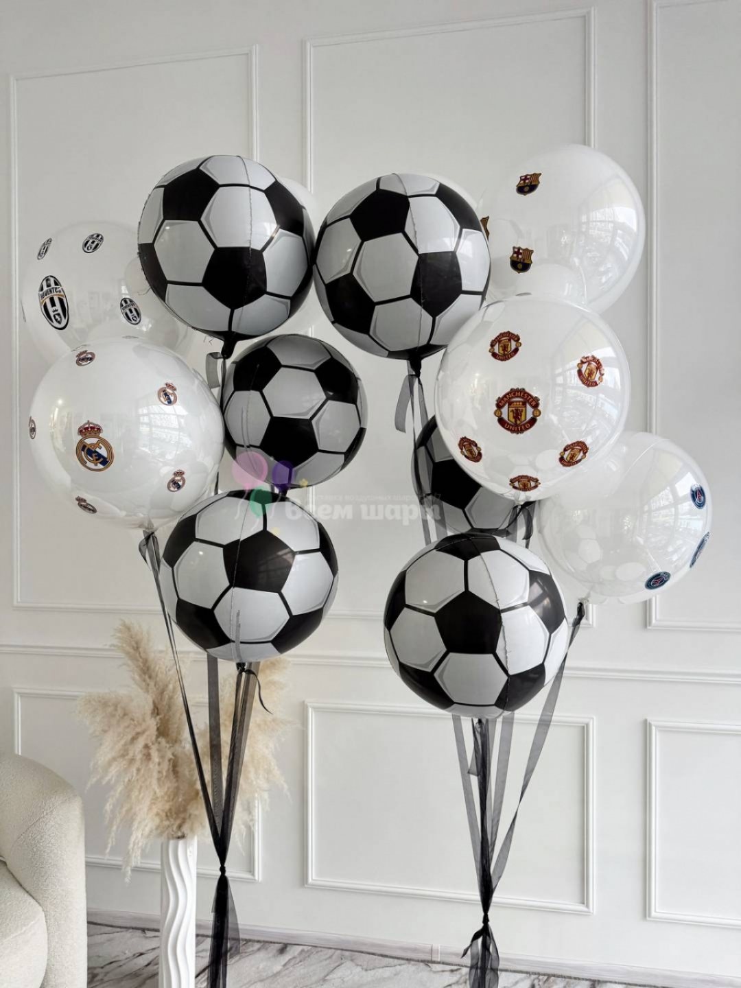 - Фольгированная сфера "Футбольный шар" 46 см - 3 шт